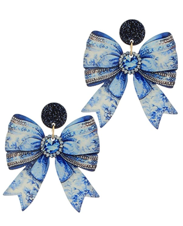 Blue Bow Earrings